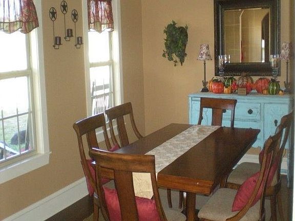 Beautiful custom built 4 bedroom, 2.5 bath ranch style home on 48.54 acres with a windmill fed pond. Delightful sitting and rocking front porch leads you to a spacious entry hall, concrete stained floors, warm living room with adjacent dining room and study. Awesome kitchen has eat-in bar, gas range, double ovens, gas cook top, granite countertops, plenty of cabinets and custom pantry. Master bedroom has walk-in closet, 10x10 tile shower with double showerheads, seperate jacuzzi tub, double sink vanity w ith granite countertops and walk-in closet. 30x40 Shed contains the office and Window A/C. Covered back patio, underground retreat, garden area and manicured fence line and acreage.