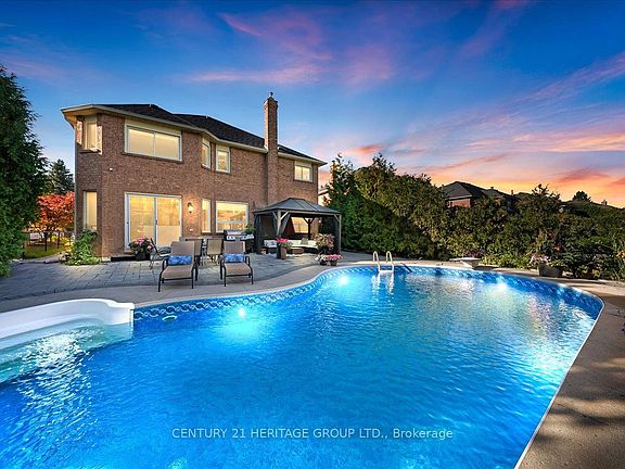 Welcome to this exquisite detached home in the desirable Glenway community! Offering over 5,000 sqft of luxurious living space, this fully renovated property features $500K in upgrades. The gourmet kitchen boasts high-gloss cabinetry, quartz waterfall island & backsplash, and premium Bosch appliances. The main floor includes porcelain flooring, smooth ceilings with pot lights, a modern office, custom wall unit with electric fireplace, and a stylish powder room. Upstairs, the primary suite impresses with a custom closet and spa-like ensuite. The finished basement offers a kitchen, laundry, 2 bedrooms, 2 storage rooms, and dual entrances. Outdoors, enjoy a private oasis with mature trees, interlocked landscaping, gazebo, and an in-ground saltwater pool with new liner & heater. Additional upgrades include waterproofing, 200-amp service, EV charger, widened interlock driveway (fits 5+ cars), and custom curtains throughout. A truly move-in ready luxury home! All of this is conveniently located near major amenities, highways, schools, parks, and Upper Canada Mall, offering the perfect blend of luxury and convenience.