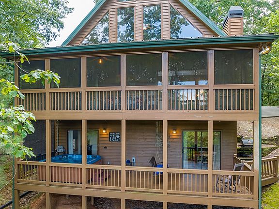 Welcome to your mountain retreat in the highly sought-after Coosawattee River Resort! This 2 bedroom, loft, 3 bath chalet-style cabin sits on a private 0.55-acre lot and offers 3 finished levels. The main level features hardwood floors, a cozy living room with stacked-stone wood-burning fireplace, a kitchen with granite countertops, stainless appliances, white cabinets, dining area, a bedroom, and full bath. Upstairs includes a loft with closet and full bath, while the finished basement offers a second living area, bedroom, dining space, full bath, laundry, and storage. Enjoy multiple outdoor living spaces with screened and open decks, hot tub, firepit area, and concrete turnaround driveway. Coosawattee River Resort amenities include pools, tennis, clubhouse, hiking trails, and river access—perfect as a full-time home, weekend getaway, or investment property!