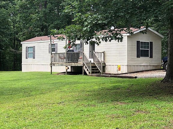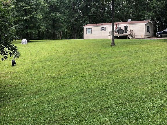 Back on the market at NO FAULT to the sellers. Private country living. This 5.26 wooded acres is off the road with easement gives you front porch sunsets. 2003 well maintained Singlewide has one shed with power and RV hookup for power. Another enclosed shed along side a metal carport leaves plenty of options for your animals. The land lays great for a future pond if desired. Seller will possibly need short week or so seller possession after closing if their build is NOT completed yet even though it is almost completed now.