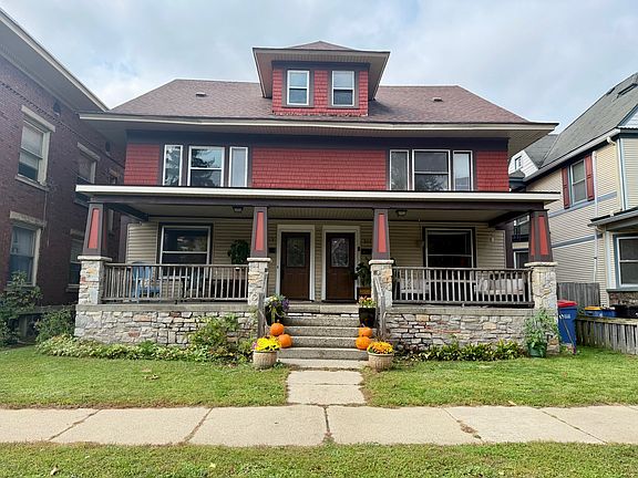 Inside, the home features hardwood floors, solid wood doors, and original trim throughout. The kitchen keeps its timeless Eastown charm with plenty of counter space, storage, and room to cook and gather. Upstairs, each bedroom offers comfort and space, while the private third floor loft is perfect as a primary suite, office, or creative retreat. All come with an AC unit included to beat the summer heat.
