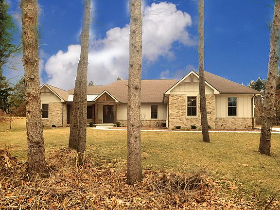 This stunning 2,775 sq ft ranch home offers exceptional craftsmanship and design. Featuring 3 spacious bedrooms and 3.5 bathrooms, including a luxurious master suite with a custom 2-tier tray ceiling, this home is both elegant and functional. The vaulted ceiling in the Great Room and the red oak stairs add timeless charm, while the 3 fireplaces provide warmth and ambiance throughout. The gourmet kitchen boasts built-in appliances, a double oven, stylish backsplash, and a hidden pantry with an extra refrigerator. The full, unfinished basement with two egress windows is plumbed for a bathroom and bar, offering endless possibilities for future expansion. Designed for both comfort and efficiency, the home is equipped with a 95% efficient Armstrong furnace, central air conditioning with a Honeywell Pro 4000 programmable thermostat, and Anderson 200 Classic Series windows. The 3-car garage offers ample storage, and the exterior features durable 2x6 walls, 16" on center, providing long-lasting strength. Step outside to the covered concrete back porch with a high ceiling, or relax on the oversized concrete patio complete with a fire pit. Set on a spacious 1.1-acre lot, the property includes a dog bath, crown molding, solid interior wood doors, and a double vanity in the main level bathroom. The master bath offers a freestanding soaker tub and separate tiled shower for a true spa experience. This home blends quality, convenience, and comfort in a serene, private setting.