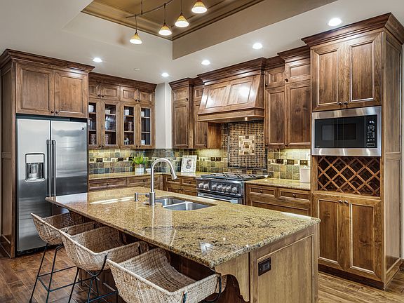 - Smart Lock(s), Double Vanity, Elevator, Kitchen Island, Linen Closet, Open Floorplan, Pantry, Primary Downstairs, Soaking Tub, Solid Surface Counters, Tile Shower, Vaulted Ceiling(s), Walk-In Closet(s)