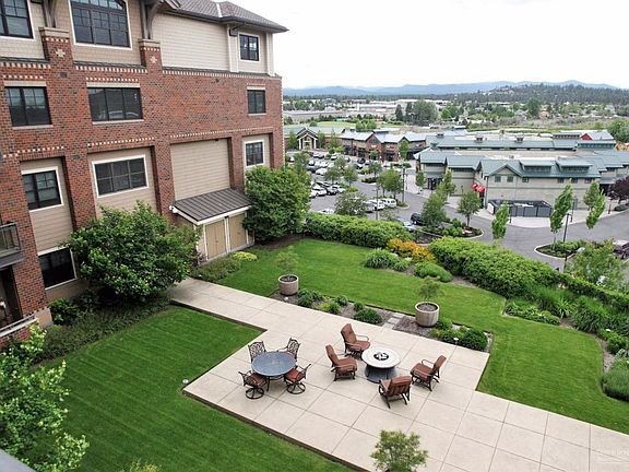 Located in the Plaza Condominiums lies this unit overlooking the Old Mill District with captivating Cascade Mountain views to the west. This unit features 2 beds with en-suite baths and large walk-in closets, a living room with gas fireplace, glass sliding door to balcony, coffered ceilings throughout, hardwood floors and a kitchen with granite slab countertops, breakfast bar, beautifully tiled back splashes, stainless steel appliances & a walk-in pantry. Perfect location in the heart of Bend.