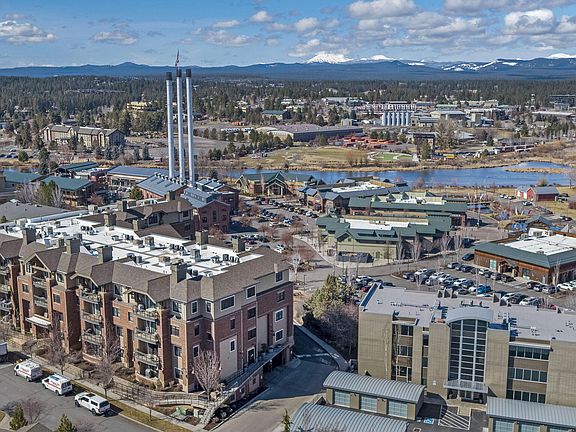 Live in the heart of it all! The Plaza is mere steps away from popular local restaurants, shopping, breweries, river trails & Bend's incredible amphitheater. This spacious condo faces west overlooking Bend's historical smoke stacks, expansive Cascade mountain range & the Deschutes River. Located on the 2nd floor this unit features two primary suites & large flex-space for 3rd bedroom, yoga/meditation or private office. Chef's kitchen hosts timeless granite counters, large working-island, SS appliances & exquisite cabinetry throughout & outdoor patio to watch the sunsets. Tons of storage throughout & this unit offers 2 deeded parking & 1 storage unit. Building amenities include secure access/parking, entertaining room w/fireplace, full communal kitchen, outdoor patio w/gas firepit & BBQ. The Plaza offers secure/heated parking garage & additional storage lockers. HOA includes water/sewer, garbage, snow removal, building/grounds maintenance & insurance.