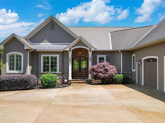 Who wants a lake house without a view? When the view matters most, look no further than 363 Stardust Lane on Lake Keowee. Open, sweeping lake views for 270-degrees with spacious, purposeful, lake view rooms to make your time with friends and family as memorable as it should be. Custom built by Kisker Construction, this home is located just off the main channel of the lake, tucked right inside of a protected, wide, open water bay. Enjoy selected trees for shaded privacy and unobstructed lake views from every living area of this quality home. There are four sizable bedrooms plus a home office, three full and one-half baths, with a three-plus car garage. In addition to the great planned space inside, there is a covered morning porch off the primary suite and a large screened porch off the kitchen to enjoy the outside. The main level features palladium windows with a cathedral ceiling anchored by a stone gas fireplace. Built in cabinets flank the fireplace with additional accent lit niches to display your art and collectibles. The lakeside features all glass with unobstructed views of the water from each and every angle. The home office sits at the front of the house with glass doors allowing you to work while taking in the lake view across the open living room. The large primary suite features another wall of lakeside glass with two walk-in closets, a separate vanity counter and large walk-in shower with jetted tub. Additional main level features include a chef's dream walk-in pantry, butlers pantry area and a spacious laundry large enough for a pet washing station. The terrace level features a defining recreation room. This is what gathering is about. Room for limitless opportunity in media, gaming and more. Terrace features include three adult-sized bedrooms, a bar and future cellar closet along with a lake toy workshop area for your fishing and lake gear with easy access from the dock to this level's second full bath. Enjoy a 1,175 sq ft garage with level parking and loads of extra storage. Step outside to the gentle sloping back yard to take in the panoramic views among nearly 150' of protected Lake Keowee shoreline. Deep water at the covered dock is the perfect spot to throw in a fishing line or take a refreshing dip after a fun-filled day on the lake. Gather with friends and family around the lakeside stone patio, perfect for an evening bonfire as the sun slowly dips into the horizon. Start living your best life today!