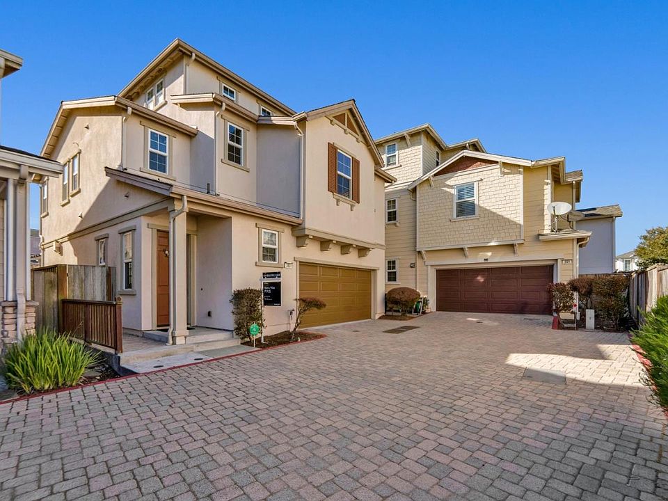 Just in time to move in before the holidays. Turned-key detached single-family home has all of what modern buyers want. Large en-suite BD w/a walk-in closet, enormous kitchen w/center island, two-car garage, pride of ownership, + more. Join the American Dream + live in a big house bc you deserve it. Main floor feats. luxury vinyl flooring + fresh paint. The second floor's floorplan is ideal: three bedrooms, two bathrooms, and a laundry room conveniently located right next to the primary bedroom, making laundry day a breeze. A light-filled top floor w/ one bedroom, a full bathroom, and a den/office area complete this near-perfect home. West-facing rear garden with w/sunset light to brighten + warm up your evening. Let the HOA manicure your community + kids to play safely on the street from minimal outside traffic. Terrific location off the highway & easy access to San Francisco + Silicon Valley. Local employers include Genentech, Google, YouTube, Apple, Facebook & Walmart.