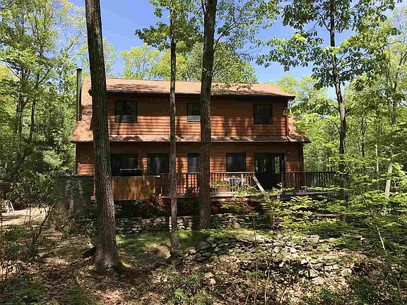 Far enough away from it all to be quiet and private, yet just a short distance to town is this like new spacious contemporary that has been all around quality built by its current owner. Perfectly sited right in the middle of a wooded 10 acre property insures year round privacy from neighbors. All rooms are proportioned well and have plenty of windows, affording views out to the varied forestry that surrounds, plus bringing in a lot of light to the home. The kitchen has plenty of granite counters and cabinets, and its appliances are all Jenn Air. Don't miss the outdoor kitchen built into the 46' x 12' deck complete with gas grill, counters, cabinets, sink and open fireplace, or the large screen porch that has many finished touches including a ceiling made of tongue and groove wood with ceiling fans. The finished lower level has a den, bedroom and full bath, with laundry area, which brings an additional 575 square feet of living space.