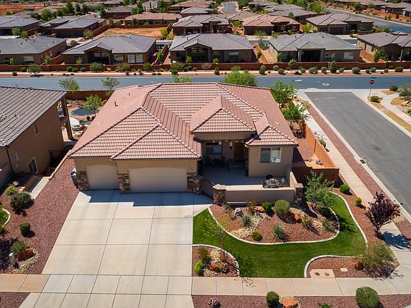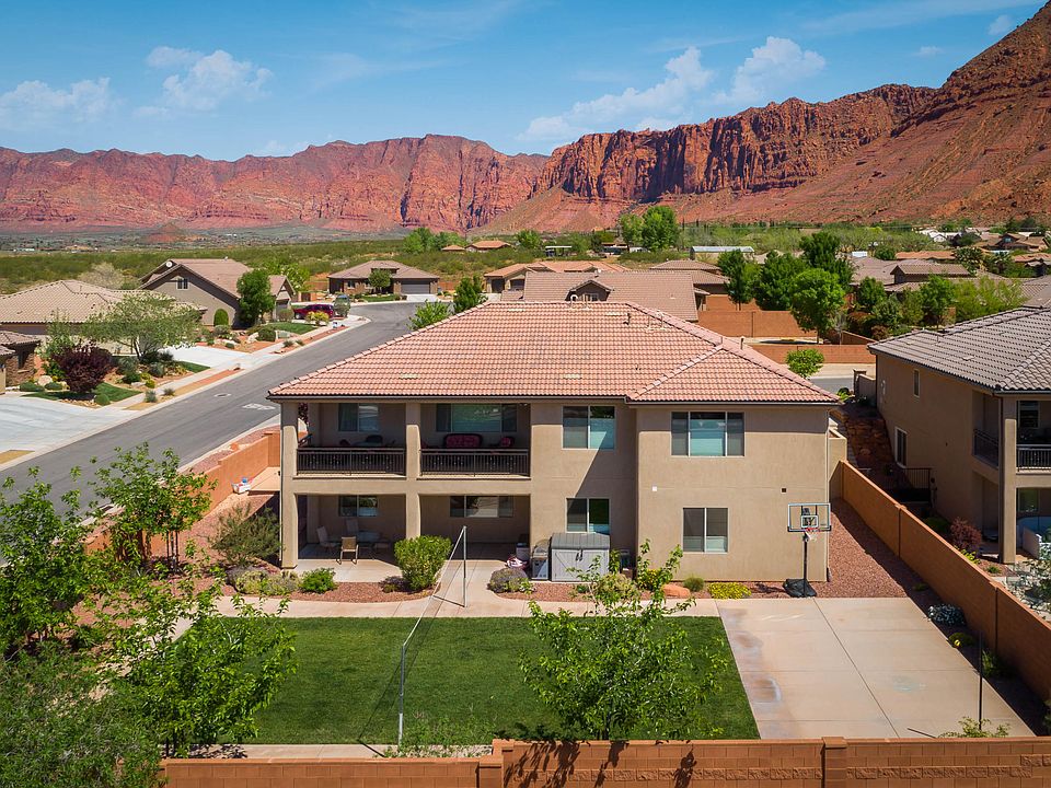 Nestled at the base of Red Mountain and minutes from Snow Canyon and St. George, this nearly new home is an extraordinary home. Spectacular views can be found all around this property. Enjoy the open concept main floor, six bedrooms with generous closets and shelving and 4 full bathrooms with custom cabinetry and upgraded granite and tile.