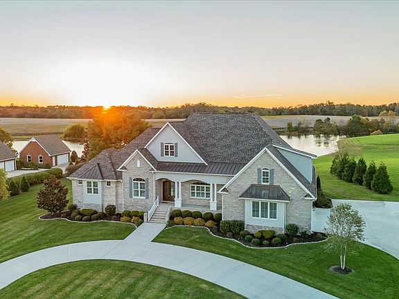 From the moment you arrive you'll know this is the one, welcome to 363 Waterford. As you enter the foyer through the custom door the attention to detail is obvious w/ upgraded casing & trim, fixtures, & gleaming hardwood floors throughout. You will find a large office w/ storage to the left w/12 panel double doors, formal dining is located to the right wainscoting, extra trim, tray ceiling & beautiful fixtures all spacious enough to entertain a crowd. Moving through the foyer & entering the gathering room you will find the rear wall with full windows & doors looking out at the water, w/ natural gas fireplace, and custom built in shelving on both sides of the room & an open window into the kitchen. The kitchen is ready for anything you can throw at it with beautiful custom cabinets, massive island, quartz counters, natural gas range along w/ two ovens, refrigerator, all stainless kitchen appliances, amazing fixtures & tile backsplash, large breakfast area w/ windows facing the water & a spacious walk in pantry w/ tons of shelving. Primary suite features a tray ceiling, recessed lighting, separate 10x10 sitting area w/ an abundance of windows viewing water & allowing tons of natural light. The primary also has 2 walk in closets w/ custom shelving & the designers bathroom a large walk in shower & soaking tub along w/ double vanities. On the other side of the floor plan you will find oversized garage w/entry area with a drop zone w/ built in storage between the other guest bedrooms, both guest bedrooms feature tile showers, solid surface vanities & large closets. The laundry area has plentiful cabinets along with a sink, quartz counters and tile backsplash. Upstairs features a massive 32x21 bonus room w/ full bath and attic storage w/ built in shelving. Just off the breakfast area you will find an outdoor space that has it all, screened in porch w/ fireplace, covered rear porch and patio all looking at at amazing sunsets just over the water for a million dollar view.