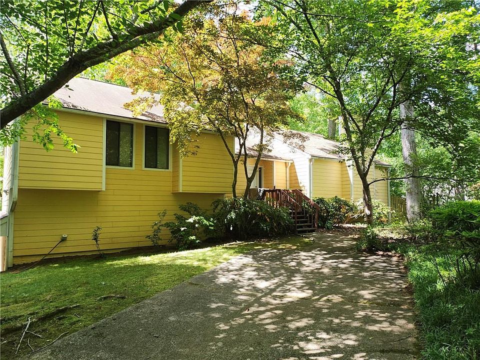 Bring All Offers! Rich with exterior features, close to I-75 and close to schools. Here is a "must see" opportunity to live in Weatherstone, a highly regarded swim/tennis community in East Cobb. This 5-bedroom, 3.5-bathroom beauty presents the sleek angles of contemporary architecture. The front porch is an easy pedestrian distance to Wheeler High School. Enjoy inspiring views of the contemplative forest and Sope Creek. Within, you'll find stylish lighting, notable ceiling styles (including vaulted and beamed), and a gas fireplace in the living room. In the kitchen, laminate counters and ample pantry space create an inspiring environment for culinary achievement and tons of options to update. The kitchen opens seamlessly onto the dining room and Breakfast room with built in cabinets. The serene primary bedroom includes a walk-in closet. The other four bedrooms, distributed on multi-levels for privacy, three upstairs are unique and ready to reflect your good taste in decor. Walk-out basement serves as guest quarters with a den, full bath with shower, dining area and full kitchen. Large garage offers extra storage and sink. Exteriors include a large back deck, covered patio from terrace level, and a breezy front porch. Don't let someone with equally great taste beat you to the closing table on this one.
