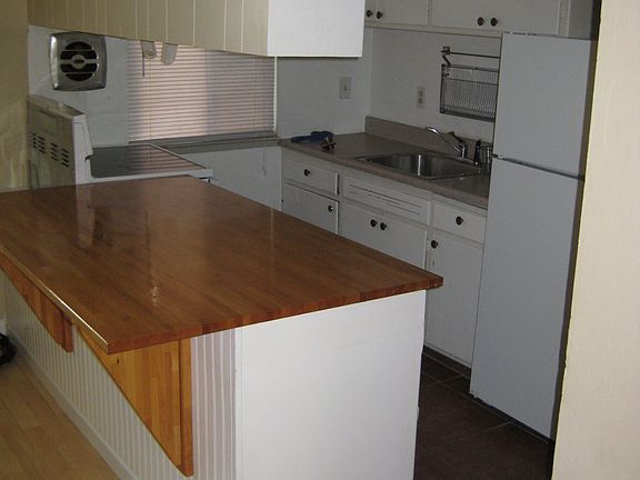 Renovated downstairs unit. Hardwood floor in main room with tile kitchen, hallway and bathroom. Shower walls tiled. 1 year lease. Rental application with credit report required. This is an 8-unit building. No dogs. Owner pays water (normal usage), sewer, and trash. Tenant has gas, electric, and internet (if they want it). No smoking. 12 month lease term.