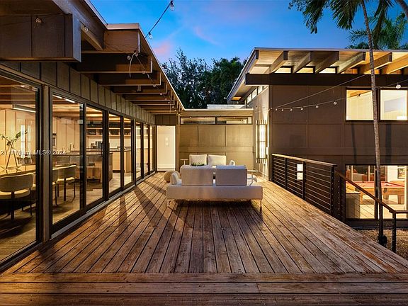 Architecturally significant Coconut Grove masterpiece crafted by renowned architect, Peter Jefferson. Tri-level 4/3 remarkable home on 10,400 sf private lot w/over 3k sf liv area & 1k sf of deck space. Updated baths, solid wood floors, full impact glass, custom designed kitchen, state-of-the-art appliances & quartz countertops. Generous walls of glass & wood beam ceilings create a naturally lit zen-like tree-house effect seamlessly merging interior to nature w/tropical garden views from every room. Recreation room opens to fenced front yard & huge deck. $1mil in 2022 updates & 2024 refurbished roof. Pool/spa renderings avail to build your own new pool. Generator. Desirable Battersea in SE Grove-best dining, shopping, entertainment, waterfront parks, yacht clubs, top rated schools.