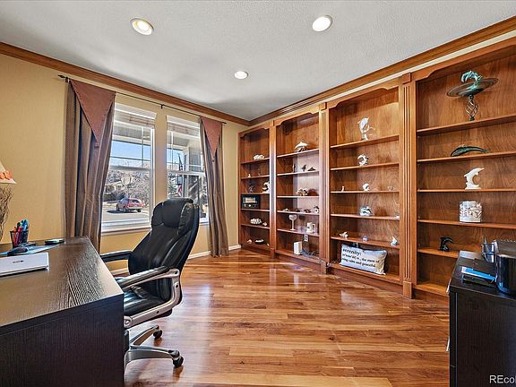 Come see this beautiful large home located in the sought-after Firelight community in Highlands Ranch! This home boasts a finished basement, remodeled primary bathroom, and an amazing backyard perfect for entertaining guests. The open and bright floorplan provides plenty of natural light, with floor-to-ceiling windows in the living room. You'll love the main floor office with its built-in shelving, perfect for working from home or for keeping organized. The large living room flows nicely into the open kitchen, featuring plenty of cabinets and black appliances, including a double oven and gas cooktop. Just off the kitchen is the backyard oasis with a stamped concrete patio, pergola, built-in seating, and natural gas firepit. Fully fenced with mature trees, it's the perfect place for outdoor entertaining. Upstairs you'll find four bedrooms, including a small landing area and an upstairs washer/dryer. The primary bedroom is large and has private deck access, and the five-piece primary bathroom feels like a spa, complete with a new tub, glass-enclosed shower, and dual sinks. The finished basement features a large family area with a wet bar as well as two additional bedrooms and a bathroom. The two-car garage is oversized with plenty of additional storage or space for a workshop. Highlands Ranch is well known for its recreation centers, walking and biking trails and award winning school district. Plus easy access to C-470 and DTC! Buyer to verify all information.