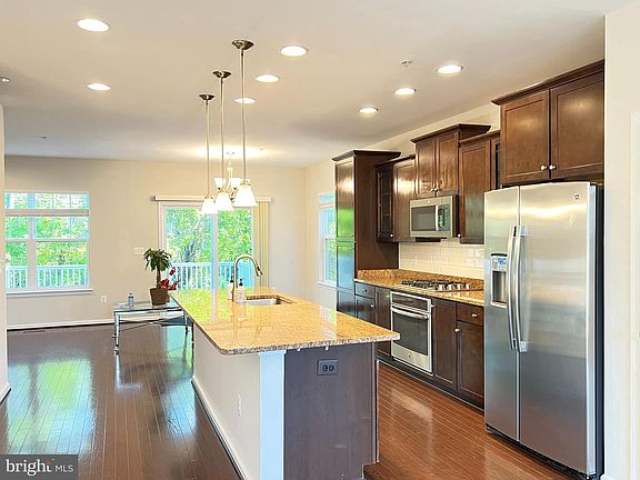 Beautiful end unit with 2 car garage and big deck, open and modern floor plan with natural light. Fully finished walkout basement with a full bath. Big community park in front and back to trees. New carpet, fresh paint, new microwave, oven/range and dishwasher. Granite counter and hardwood on main level. Great location, minutes to ICC, I-270, metro, commuter routes!