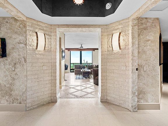 Stunning 10th-Floor Custom Residence at The Landmark Residences Experience unparalleled luxury in this meticulously designed 2 bedrooms, 2.5 bath residence, complete with a den/family room, nestled in the prestigious Landmark Residences. This 10th-floor home is elegantly furnished, showcasing custom craftsmanship and a panoramic view of breathtaking sunsets. Enter through a grand foyer, accentuated by a spectacularly detailed stone wall, leading you into a living space where every detail has been considered for sophisticated living. The residence features a combination of fine woods, glass, and stone finishes, enhancing its contemporary elegance. The living room, family room, and den are adorned with high-end swivel built-ins, exquisite wall decor, and electric blinds for ultimate privacy and style. An exceptional wet bar becomes a focal point with its uplift cabinetry, glass tile backsplashes, granite countertops, and a unique pebble stone floor inlay. The gourmet kitchen is a chef's dream, equipped with top-of-the-line stainless steel appliances, soft-close wood cabinetry, and sprawling granite countertops, including a spacious pantry. The master suite is a sanctuary of luxury, featuring a large walk-in closet with custom shelving, a bespoke built-in desk area with a TV, electronic blackout blinds, and a custom-designed bed with an integrated headboard and framed mirror. The ensuite master bath provides a spa-like experience with dual vanities, a Jacuzzi tub, and a large walk-in shower. Guest accommodation is equally lavish, offering a custom-built ensemble including a bed, headboard, footboard, and designer lighting. The split floor plan ensures privacy and comfort. Step outside to a serene, spacious private terrace, where tranquil water and city views await, free from neighboring obstructions. This residence redefines luxury living, with each piece of furniture and every detail purposefully curated for this unique space. Embrace a life of exceptional comfort and prestige at The Landmark Residences.