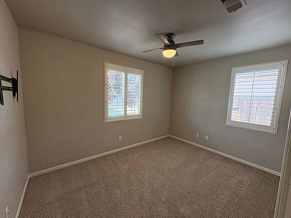This beautiful home offers 4 rooms and 2 bathrooms each room contains carpet. There is a formal dining area near the entrance of the home, as well as a dining area fixated between the living area and kitchen. The kitchen is equipped with a gas stove, built in microwave, dishwasher, a kitchen island and a barstool seating area looking into the kitchen. The master bedroom including double sinks, a jetted tub, and a walk-in shower. This home offers an indoor laundry with hookups, a two-car attached garage, covered patio with a storage shed available for tenants use. Don't miss your chance to take a look at this wonderful home!