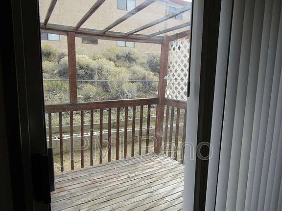 2 bedroom 2 bath duplex unit near UNR and TMCC. Main bedroom features a walk-in closet and full bath with double sinks, and sliding glass door to the backyard deck.. Unit includes w/d hookups and a garage.