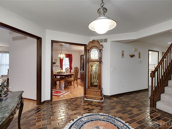 Welcome to this one-of-a-kind, Well Maintained, Tudor, located in the Northmont School District. This distinctive and stately custom built, 4 bdrm, 2 full baths, 1 half bath, 2 story home, offers a foot print of almost 2700 sq. ft. of living space. Upon entry, you'll be greeted by a grand and spacious rotunda featuring slate tile. From the foyer you can access the living room or dining room both featuring hard wood flooring and lots of space, perfect for hosting family and friends. The eat-in kitchen offers lots of light and is equipped with lots of cabinets for storage. From the hallway, step down into the large family room featuring rustic wood flooring and wood burning fireplace, perfect for relaxing. The laundry room is conveniently located on the main level. Upstairs you will find a large primary bedroom boasting a four piece on-suite bathroom, walk-in closet and a separate study/nursery/sitting area offering a peaceful retreat. Along with the other sizeable bedrooms, there is a huge convenient full bathroom. The unfinished basement offers more than enough space for the new owner to add their special touch. Attached via breezeway is a 2-car garage offering ample room for extra storage. The front yard is tastefully landscaped, and the tree lined backyard provides additional privacy while creating a comfortable outdoor oasis. Don't miss out. This home is waiting for you.