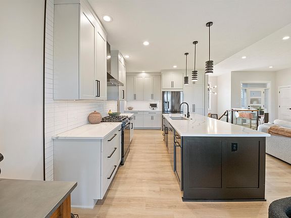 Welcome to this stunning, like-new modern home nestled in a quiet neighborhood close to schools, the YMCA, and walking trails. Enjoy open-concept living with a beautifully designed kitchen featuring sleek cabinets, premium countertops, and a huge hidden pantry. The spacious layout flows seamlessly into the dining and living areas, perfect for gatherings. Step outside to the covered deck for relaxing evenings. Downstairs is built for entertaining with a wet bar and walkout covered patio. Bonus room with a sauna and dedicated weight room. The garage is insulated and heated and the back yard is fully fenced in. Every modern amenity you could want is right here!