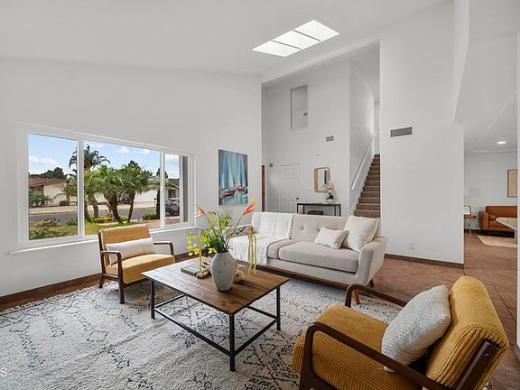 Welcome to this beautifully refreshed five-bedroom, three-bathroom home in the desirable Via Marina neighborhood. With fresh paint throughout and new carpeting, this 2,155-square-foot residence is move-in ready and waiting for its next chapter.The thoughtfully designed open floor plan creates a seamless flow perfect for modern living and entertaining. Cathedral ceilings in the living room add volume and light, while the cozy fireplace creates an inviting focal point. The recently upgraded kitchen features matching appliances, ample counter space, and a convenient pantry.The home's flexible layout offers something special for everyone. The upstairs primary suite provides a private retreat, while a main-floor bedroom and full bathroom deliver convenient single-level living options for guests or family members.Step outside to discover the true gem of this property--a large backyard patio that extends your living space outdoors. Whether you're hosting summer barbecues, enjoying morning coffee, or creating your own outdoor oasis, this versatile space adapts to your lifestyle.Located on a quiet residential street, you're just moments from Oxnard's beautiful beaches and within easy walking distance of the shops and restaurants at Seabridge. This home perfectly balances coastal convenience with comfortable neighborhood living. Experience the best of Southern California living in a home that's ready to welcome you today.