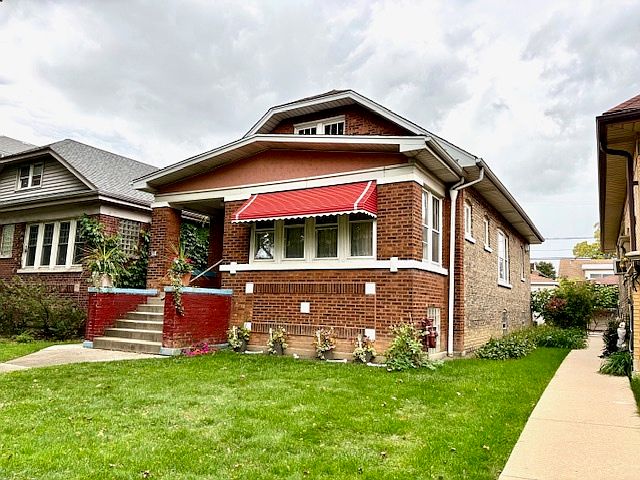 Irving Park neighborhood, just north of the Avondale area. Solid, very well-kept brick bungalow on an aesthetically pleasing street. Ample entry to an expansive living room with a gas fireplace and a large formal dining room. Great spaces for gatherings.Kitchen in good condition and has a pantry. Enclosed back porch. Two bedrooms and full bath on the main level. Full attic and a basement with a high ceiling are clean and ready for your expanding ideas. Near expressway, Blue line and bus lines.
