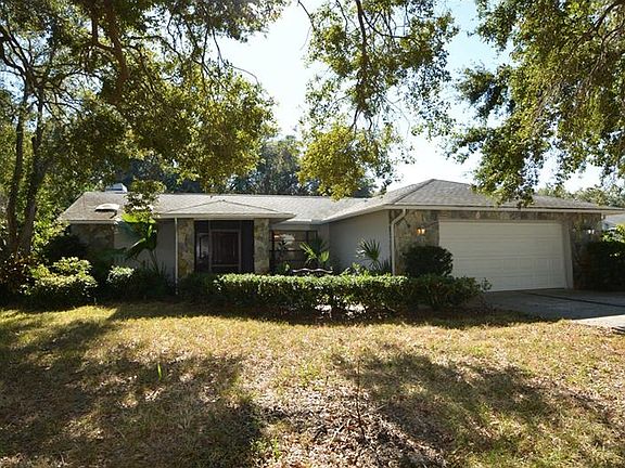 Great location. Spacious pool home with large screened pool enclosure, kidney shaped pool and a spill over spa. Wooded view, no rear neighbors, oversized lot, mature trees. Open living room, vaulted ceilings, split floor plan. Master suite has a walk-in closet.