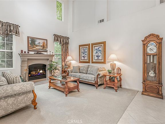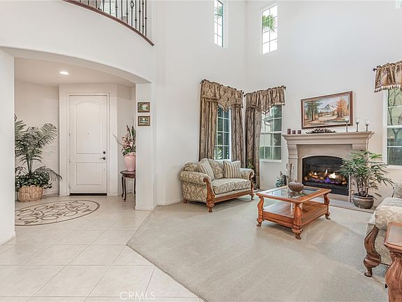 This two-story home is located on one of the largest lots along the golf course in the Tournament Hills gated community. If you like SPACE and VIEWS, this is the home for you!! The first thing visitors see upon entering the home, is a beautiful custom tiled medallion at the front entry. High ceilings and neutral-colored flooring and walls come together to create an impressive view of the formal living room (with a fireplace) and staircase with peekaboo views to the family room and massive backyard. An office is located to the right of the main entrance and has a custom-built bookcase, spanning an entire wall. The family room and kitchen are open concept and have a wall of windows, showcasing the spectacular backyard and endless views. A separate formal dining room, guest bedroom with sliding doors to the backyard and a 3/4 bathroom are also located downstairs. The kitchen has granite countertops, double ovens, a built-in gas cooktop, microwave, dishwasher AND an over-sized kitchen island to accommodate counter seating and meal prep. There is also dedicated space for a breakfast nook with sliding glass doors for backyard access. Upstairs are the primary bedroom and two additional bedrooms and a LARGE loft, currently being used as a game area with electronics, a pool and poker table. The numerous windows from the loft offer spectacular views of the local San Bernardino mountains. The primary bedroom has an ensuite bathroom and spacious walk-in closet but the BEST part of this bedroom is the balcony and the VIEWS one gets of the backyard, golf course and hills off San Timoteo Canyon. The backyard is massive and an entertainer's delight with a patio cover that extends the entire length of the house, an outside BBQ with sink, gas burner, fridge and bar seating, a pool, large grassy area and a viewing deck at the far end of the yard. This home also has a 2-car garage and a single car garage and a large storage shed on the side yard. This gated community features beautiful green spaces, walking paths, the lake, gazebo and security presence. Tournament Hills Elementary is walking distance and other amenities in close proximity include shopping, restaurants, parks and close freeway access.