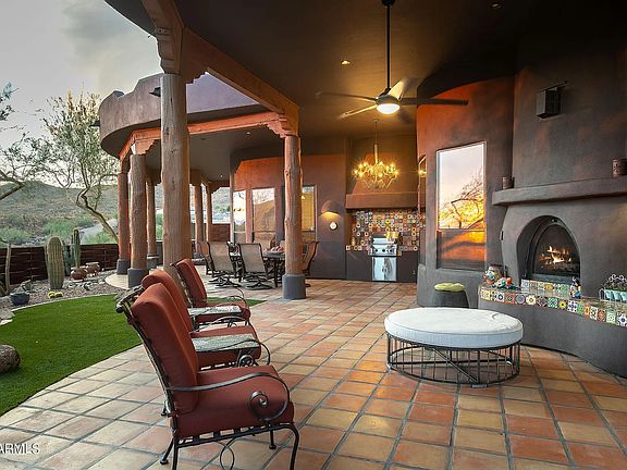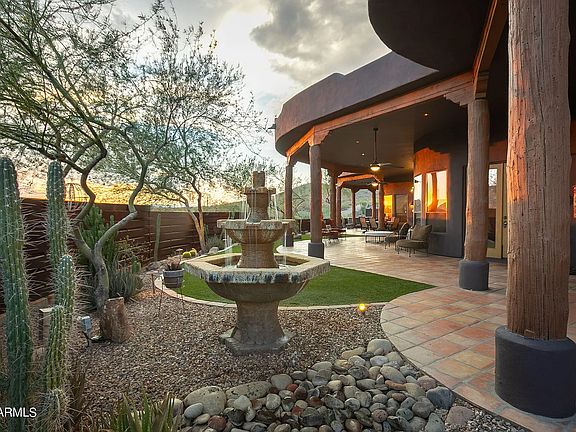 Gas fireplaceSoaring ceilingsNatural log vigasLuxurious bathsCascading fountainEndless viewsExpansive covered patio