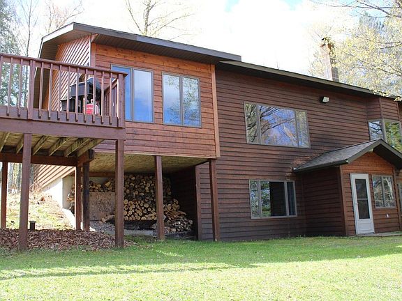 (227/JG-DE) Your Search has Ended! This custom built, contemporary-designed lake home is situated on a roomy 3.35+/-A. wooded lot for privacy on Adams Rd,16 mi. from Winter & 20 mi. from Phillips. 125’ of shoreline on pristine clear water, 273 A., 39’ deep, Lake of the Pines. Most of the lake will remain undeveloped because it is a jewel in the Flambeau River State Forest. Mother Nature will remain the major developer. Quality materials and craftmanship are evident throughout this cedar sided home with 2 decks, covered entry, & 2300 S.F. of finished living space, plus workshop. 4 BR (including loft), 2 full baths, a 4 season room, & 2 living areas. Cathedral ceilings & lots of natural wood & windows to bring in the outdoors & provide the Northwoods Feel. 1-car att. insul. garage, 2 car det. garage & 28’x54’ toy shed. Appls. & most furnishings included. All forms of outdoor recreation are at your doorstep. Anything else is a compromise! Investment: $434,500. '20 txes: $2629. 23-38-3W