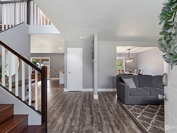 Rare listing in Hawks Prairie Jaylee community featuring 4 bed + 2.5 ba at 2232 sqft. This bright and updated home welcomes you with a two-story entry into the open concept floor plan showcasing two living rooms, formal dining, and modernized kitchen w/ granite countertops and new appliances. Tile in the kitchen, half bath, and utility on main. Huge closet under stairs. Find 3 large bedrooms and full bath, plus oversized primary bedroom w/ 5 piece en-suite and WIC upstairs. Outside, enjoy the covered back patio and low maintenance lawn. Situated on a level corner lot adjacent the neighborhood playground. Attached 2 car garage, & metal storage shed. Minutes to I-5, shopping, and amenities. South Bay Elem, Chinook M, and North Thurston HS.