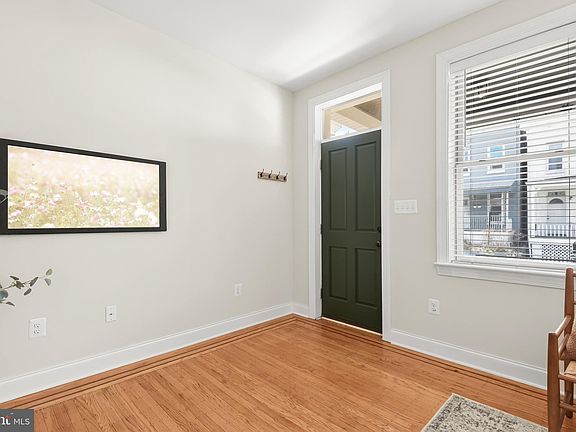 Prepare to be charmed by this delightful three bedroom, two full bathroom row home nestled in the heart of the Hampden Historic District, complete with private parking. Recently painted in with neutral tones, this home has been tastefully updated, highlighting its original hardwood floors, tall ceilings, transom windows, and abundant natural light. Welcoming you upon arrival is a covered front porch, ideal for savoring a morning coffee or relaxing at day's end. Step inside to find a front living room beckoning you to unwind. The kitchen is a culinary haven, featuring quartz countertops, tiled backsplash, a center island, stainless steel appliances including gas cooking, and 42-inch soft-close cabinets with lighting underneath. Adjacent to the kitchen, the dining room exudes elegance with its wainscoting and dual-opening doors leading to the fully-fenced rear patio and a two-car parking pad. Ascend to the upper level to discover the primary bedroom boasting a soaring vaulted ceiling, alongside a second bedroom and a beautifully appointed full bathroom. The fully-finished lower level adds versatility, offering a third bedroom and an adjacent full bathroom with a walk-in shower featuring a bench. Laundry and access to the rear complete this level. Situated only two blocks from "The Avenue," also known as 36th Street, this home is close to an array of excellent restaurants, cafes, bars, shops, boutiques, art galleries, and tons of entertainment options. With convenient proximity to I-83, explore all that Baltimore has to offer.