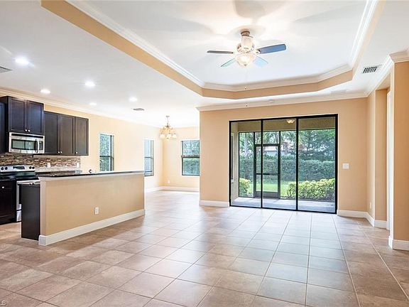 Welcome to this Stylish Single Family home located in Canopy which is located in one of the best school district areas in Collier County. This home features 3 bedrooms plus a den, 2.5 baths and a two car garage. Home has been freshly painted and upgraded with all these nice features; 42 inch dark wood cabinets; granite counter tops; custom glass back splash; breakfast bar; walk in pantry and stainless steel appliances. Tray ceilings in the entry; living area; master bedroom and beautiful medallion on the entry tiled floor and crown molding in most rooms is what makes this home very unique. Master bath has dual sinks; granite counter tops and walk in shower. Bedrooms have laminate flooring and tile floors throughout the rest of the home. Open the sliding glass doors to your screened in lanai and enjoy the privacy and preserve view with a spacious backyard with lots of room. Canopy is a gated community located in North Naples and is just minutes away from the Gulf beaches, shopping, Mercato, restaurants, etc.