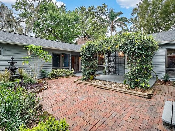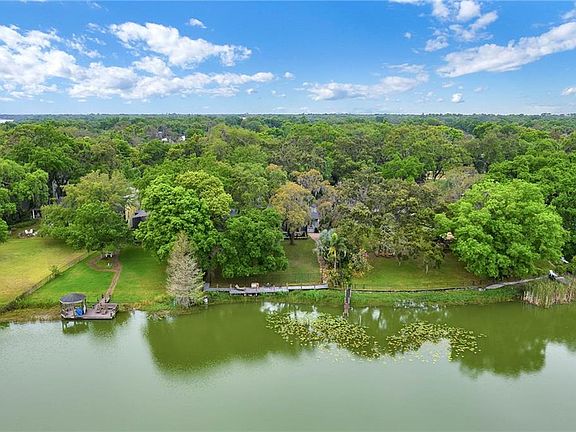 Tranquil LAKE FRONT 4/3.5 Pool Home with Character and Courtyards on a manicured sprawling 1.3 acre lot! MUS SEE THE PICS! NEW HEATED POOL and SPA with Natural stone work, OVERSIZED SCREENED & Covered Lanai overlook the huge yard, dock, and quiet lake! **DETACHED 4 CAR GARAGE/Workshop with **TRUE BARN DOORS**with its own separate room that could serve as a home office, Craft room, or Man-cave. **NEW ROOF 2019**New Landscaping, New Plumbing 2017, Updated kitchen, and master bath, New AC and Gutters 2017. Incredibly tranquil views are in virtually every room! From the kitchen alone you'll enjoy views of 2 courtyards, the pool and the Lake! STAINLESS APPLIANCES, Stone Counters, SHIPLAP, Antique Doors, 2 OUTOOR SHOWERS, Pinterest style Tree house, Outdoor BRICK OVEN. The grounds offer plenty of space with shady trees. Coming home could be just getting away! Call today for an appointment