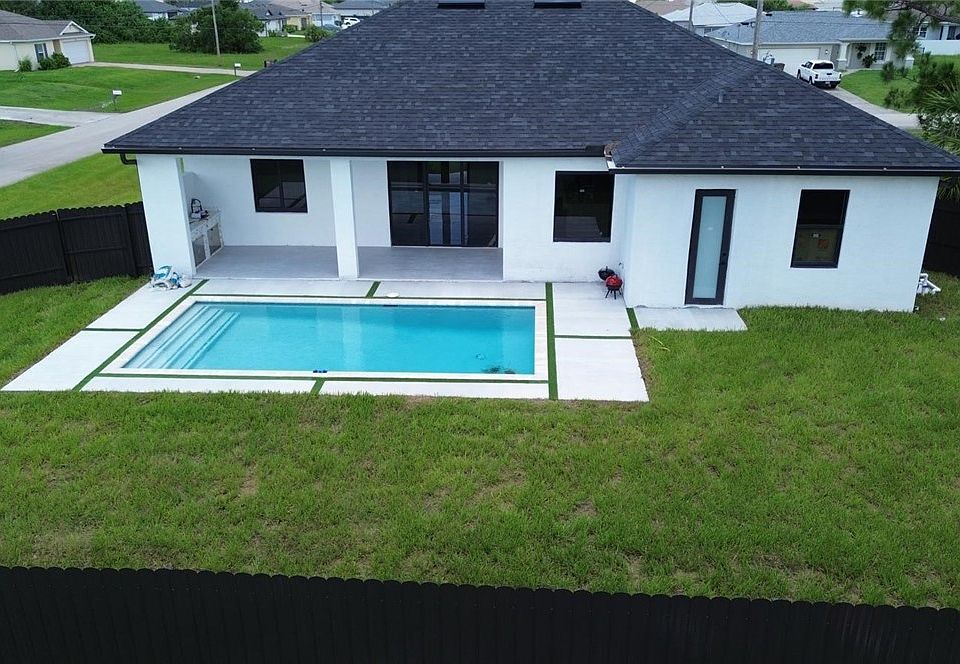 ¡¡BRAND NEW POOL HOME WITH FENCE!! STUNNING NEW CONSTRUCTION 2024 back to the market TOTAL SQUARE FOOTAGE UNDER ROOF 2250 SQ FT 4 Bedroom, 3 Bathroom, 2 Car Garage Home located in Cape Coral. It comes with IMPACT DOORS &WINDOWS which leads you into SPACIOUS OPEN FLOOR PLAN. Many upgrades like STAINLESS STEEL appliances, QUARTZ countertops, pendant/ recess lighting, pantry closets, and high premium faucets. MASTER BEDROOM with 2 walking closets, very spacious and comfortable. Garage with flake EPOXI FLOOR and SO MUCH MORE