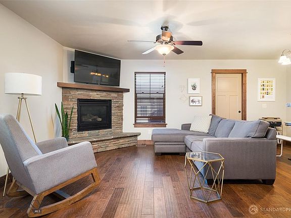 - Main Level: Dining Area, 1 Half Bath, Fireplace/Stove, Kitchen, Laundry Room, Living Room, 1 Bedroom, Garage