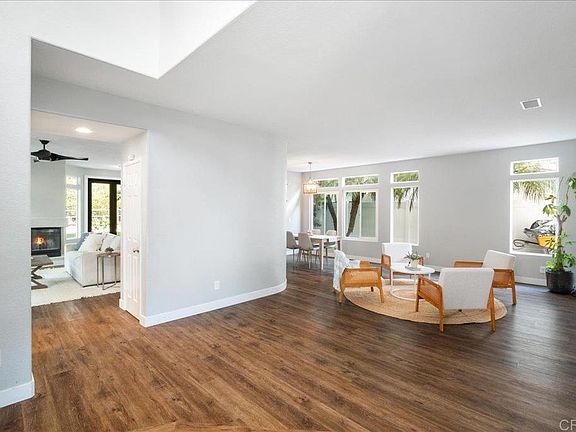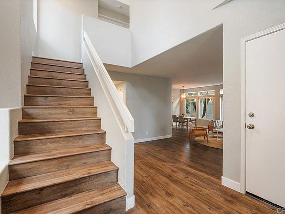 Welcome to 3631 Via Bernardo, a bright and beautifully upgraded home in the highly desirable Terra Mar community of Oceanside. This 4 bedroom, 3.5 bathroom property offers modern farmhouse style with white shaker cabinets, quartz countertops, luxury vinyl plank flooring, brand new carpet, and abundant natural light from the updated dual pane windows and wide patio doors. The open concept kitchen shines with its white cabinetry, sleek quartz counters, stainless steel appliances, and a charming sink window overlooking the private backyard. It opens seamlessly to a cozy living room with a built-in bar area, creating an inviting space for both gatherings and everyday living. Step outside to a low maintenance retreat featuring pavers, turf, a pergola, a modern fire pit, and mature landscaping. The yard backs to a lush green embankment, enhancing privacy and offering a serene backdrop. One of the larger yards in the neighborhood. Upstairs, you’ll find all four bedrooms plus a spacious loft perfect for a home office, media room, playroom, or potential fifth bedroom. The primary suite includes a sitting nook, a private deck, a walk-in closet with built-ins, and an airy layout filled with soft natural light. The upstairs laundry room adds convenient function to the floorplan. Additional upgrades include fully remodeled bathrooms, energy-efficient windows, upgraded aluminum patio doors, and a brand new A/C system for year-round comfort. Residents of Terra Mar enjoy low HOA amenities including playgrounds, greenbelts, a sparkling pool, spa, and clubhouse. With close proximity to Calavera Hills hiking trails, top-rated Madison and Lake Schools, shopping, dining, and quick access to the 78, this home delivers style, space, and an incredible North County lifestyle.