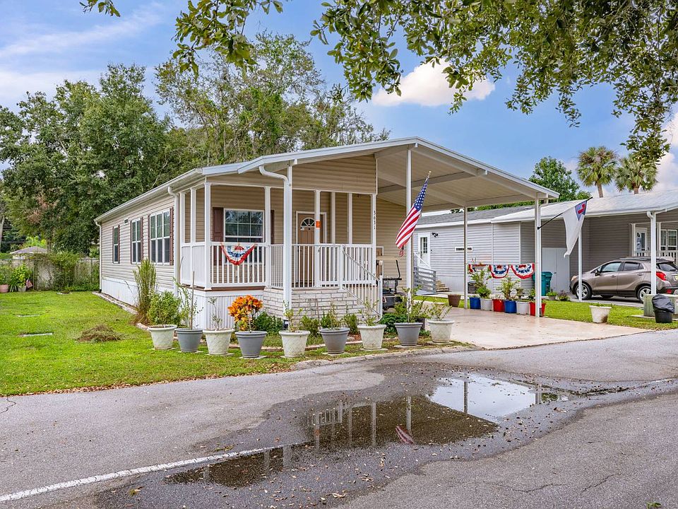Discover the elevated retirement lifestyle you deserve in this beautiful, upgraded 2017 two-bedroom, two-bath home located in the desirable Good Samaritan 55+ community. This home makes a stunning first impression, sitting high above the rest with a gorgeous, sealed, and stained front porch perfect for enjoying your morning coffee. The home presents an inviting open-concept floor plan. As you enter, you are greeted by vinyl plank flooring that flows through the main living and dining areas. The spacious kitchen truly shines, featuring striking herringbone-style vinyl wood flooring, sleek stainless steel appliances, and ample storage from both 42-inch and 36-inch cabinets. The dining area is accented with crown molding and clean, modern recessed lights above the table, offering a sophisticated look. The primary suite is a true sanctuary with a very spacious closet, and its master bathroom features tile flooring, a walk-in shower, dual vanity sinks, and high-rise toilet. Convenience is key with a dedicated laundry room that includes a sink, cabinets, and a closet, plus a separate side entrance to the home. As a phenomenal bonus, this home comes complete with a golf cart that has been recently upgraded with new batteries and a wiring system, making it ready for you to stroll around the park immediately. You'll also find a shed and plenty of parking space. The Good Samaritan Village offers a wealth of resort-style amenities to support an active and fulfilling retirement. Residents enjoy both an outdoor pool and spa and an indoor pool and spa, access to a nine-hole executive golf course, shuffleboard courts, and a dedicated Wellness Center with exercise equipment and classes. The community is a hub of social activity, featuring a community center, a library, beautiful walking paths, an on-site restaurant/café, and numerous clubs and social gatherings. Best of all, the lot rent is only $702 a month, which covers water, sewer, trash, and basic cable. Don't miss this opportunity to enjoy an upgraded, newer model home and an active retirement lifestyle; schedule your showing today!