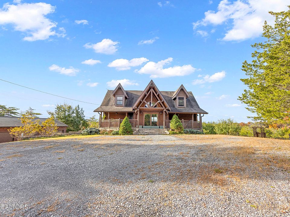 Gas fireplaceWorkshop spaceFinished full basementCovered balconyCovered porchesOne car garageCustomized log cabin retreat