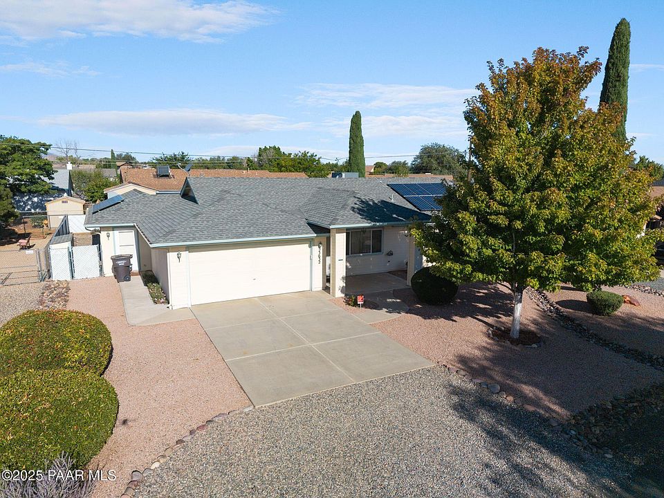 Welcome home to comfort, character & endless possibilities! From the moment you arrive, you'll feel the warmth and charm of this 3 bedroom, 2 bathroom home nestled in the heart of Prescott Valley. With 1,669 sq ft of living space, this thoughtfully maintained home offers a little something for everyone -- whether you love relaxing in peaceful spaces, entertaining family and friends, or rolling up your sleeves in a workshop built for creativity.Step inside and you're greeted with vaulted ceilings, an open and airy living room, and a kitchen that's both stylish and functional -- complete with granite countertops and an under-mount sink. The adjacent screened-in Arizona room is perfect for enjoying the seasons, morning coffee, or winding down in the evening with a bottle of wine.The spacious primary suite features an ensuite bath and large walk-in closet, while an additional office/flex room gives you the space to work, read, or craft.But what truly makes this home special is the workshop/man cave -- a dream for hobbyists and DIY enthusiasts alike, equipped with compressed air connections, shelving, and an extra storage room right off the back.Additional features you'll love:Solar panels for energy efficiencyLandscaped front and back yards, with a fenced backyard for added privacy and petsGas Pack system to keep you comfortable year-round2-car garageSecurity system for peace of mindWasher and dryer includedSmall shed for extra outdoor storageBuilt in 1999 on a 0.18-acre lot, this home has been lovingly cared for and is ready to welcome its next family. Whether you're starting fresh or simply looking for a place that feels just right, this Prescott Valley gem might be the one you've been waiting for.