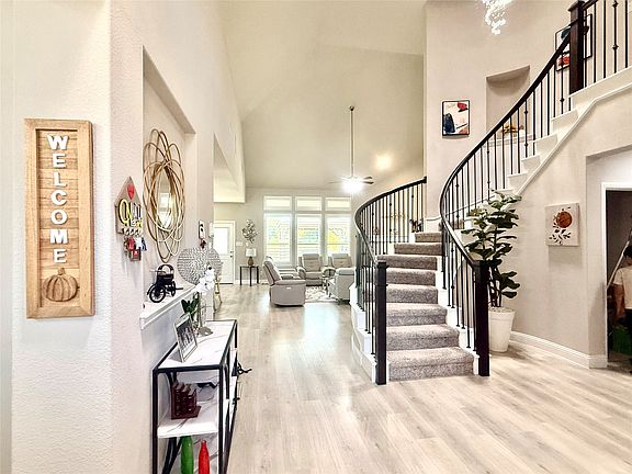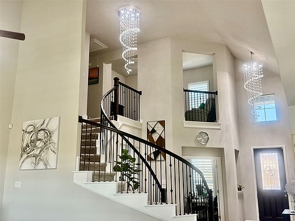 Welcome to this stunning 4-bedroom home located at 3632 Rainwater Trail in Midlothian. From the moment you step inside, you’re greeted by soaring ceilings and an abundance of natural light that highlights the open floor plan and elegant chandeliers throughout. The spacious kitchen is a chef’s delight, featuring granite countertops, a built-in oven and microwave, and plenty of counter space for entertaining. The main floor offers two bedrooms, including a private office, while the upstairs provides additional bedrooms along with a dedicated media room for movie nights and gatherings. Step outside to the oversized backyard designed for both relaxation and entertainment. Enjoy the expansive patio with a pergola, plumbed gas connection for your grill, a storage shed, and beautifully maintained gardens—all with serene views of the pond. An extra concrete sidewalk adds convenience and accessibility. This home perfectly blends elegance, comfort, and functionality in a highly desirable neighborhood. Don’t miss your chance to make it yours!