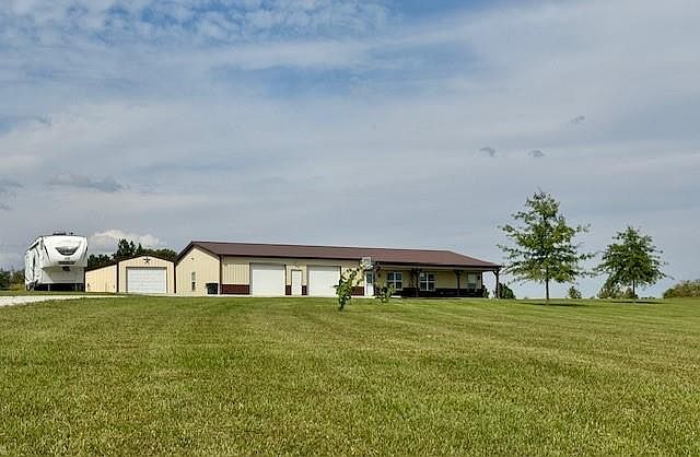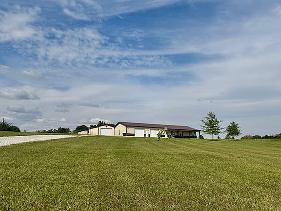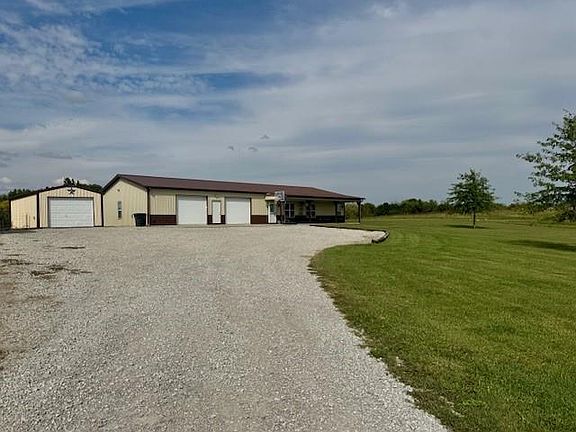 Welcome to your peaceful retreat---10 fully fenced acres nestled in the countryside, just 25 minutes from Kansas City. This charming ranch-style barndominium offers the perfect blend of comfort and functionality, featuring: