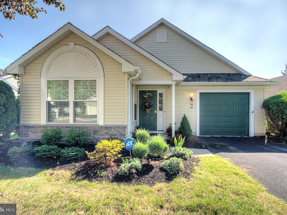 Spacious 2 Bedroom 2 Bathroom Rancher located in the desirable 55+ Adult Active Community of Lakeridge. Great single level living layout with vaulted ceilings in the dining area and living room and beautiful white shutter which are included. This home has been very well maintained with many new windows allowing for nice natural lighting throughout. There is a large eat-in kitchen with the refrigerator included, a gas range, dishwasher and refinished cabinets. Atrium doors in the living room lead to the patio and back yard. You will love the Primary bedroom with ensuite bathroom and a nice sized walk in closet with ample storage . The roof was replaced around 2021 and a newer hot water heater around 2023. The heater and central air were replaced around 2017 and a new thermostat replaced around 2024. The solar panels are leased. There is a newer garage door opener and convenient inside access from the garage. The driveway allows for 2 car parking plus street parking as well. Nicely landscaped yard with sprinkler system. The laundry room has plenty of room for storage and the washer and dryer are included. This is a very vibrant amenity rich active community with much to offer and plenty of activities to do!