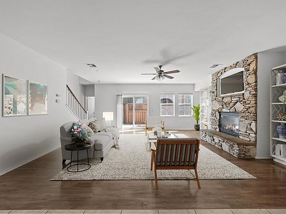 Refreshed and move-in ready, this turnkey townhome offers a bright, open layout and a prime location near Temecula Valley Wine Country. Newly updated with new hard-surface flooring in the living room and bathrooms, new carpet on the second level, fresh paint and new blinds throughout, and new ceiling fans in nearly every room. An open-concept main living space overlooks the dining area and kitchen with a custom stone fireplace and direct access to the private outdoor patio. The kitchen boasts stainless appliances, including a new refrigerator, granite counters, tile backsplash, abundant cabinetry, walk-in pantry, and a center island with breakfast bar. The primary suite features a large walk-in closet with custom organizers and an ensuite bathroom with dual vanity, jetted soaking tub, and separate walk-in shower. Two additional bedrooms, full bath, and convenient upstairs laundry room complete the second level. A two-car garage provides direct access and storage. Community amenities include a pool & spa, playground, and Sheffield Park is just a short walk away. Located within the Temecula Valley Unified School District and close to shopping, dining, and local wineries. Enjoy the best of Southern California living with nearby hiking trails, fishing, lakes, conservation areas, hot springs, and more.