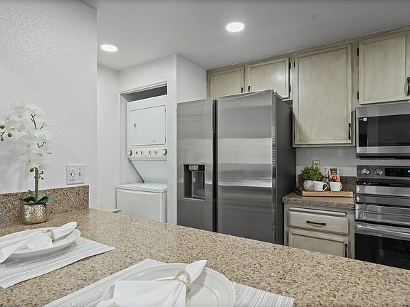 Scenic hillside viewsUpdated flooringNew recessed lightingModern appliancesIn unit laundryVaulted ceilings