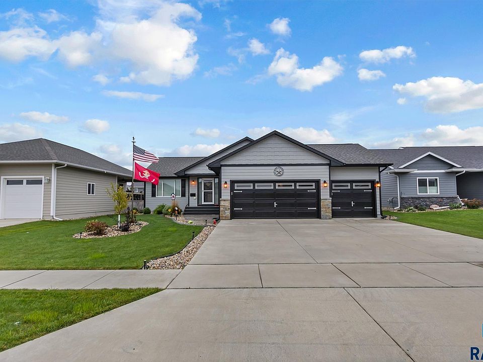 This impeccably maintained newer home blends quality craftsmanship with everyday comfort and ease. Step inside to soaring vaulted ceilings and an inviting open layout that feels bright and spacious. The kitchen is a true centerpiece, featuring a gas stove, large breakfast island, and ample cabinetry—ideal for both cooking and entertaining. The main level offers two generous bedrooms, including a relaxing primary suite with a private bath. The lower level continues the comfort with two large bedrooms, a full bathroom, and a welcoming family room anchored by a cozy gas fireplace. Enjoy the practicality of laundry on both levels and a finished, heated three-stall garage. Step outside to a beautifully landscaped yard with permanent edging, a serene patio for outdoor gatherings, and an underground sprinkler system for effortless maintenance. Every detail reflects pride of ownership—offering a truly move-in-ready home that’s as functional as it is beautiful.