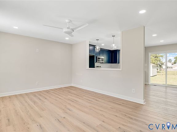 Modern fixturesFirst-floor primary suiteLaminate wood flooringBeautifully finished bathroomsRecessed lightingSliding glass doorsTile backsplash