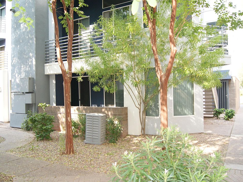 Clean and move-in ready condo in an ideal Midtown Phoenix location. Tree lined and courtyard setting for this corner and ground level home with an attached single car garage and extra uncovered parking space. Walk or bike to the Light Rail from the home with plenty of retail surrounding you. Home features a full size washer and dryer, stainless steel appliances, tile flooring, subway tiled bath/shower surround, walk-in closet, patio access off the living room/master bedroom and much more. Easy access to all Central Phoenix has to offer. Check this one out before it's too late.