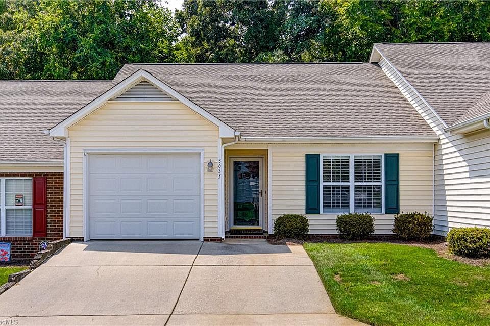 Enjoy easy maintenance free living in this one level townhome with a 1 car garage, located in the River View community! One of most convenient locations in the Triad. Just off of Wendover close to tons of shops and restaurants. Close proximity to all major highways & the Airport. This home offers two bedrooms and two full bathrooms. Living room with a vaulted ceiling & skylights to let the natural light shine through. Also, a fireplace to cozy up by when it's cold out. Enjoy your morning coffee or evening beverage on the back patio. The fenced in patio backs up to a wooded area that offers great privacy. Low HOA dues. Seller is leaving the refrigerator, washer & dryer. Don't miss this well maintained & move in ready home!