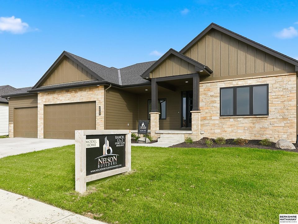 This beautiful Montgomery ranch floorplan built by Nelson Builders features 2 bedrooms + a bonus room on the main level. Downstairs you'll find two additional spacious bedrooms. You'll love its spacious kitchen, which is a true culinary haven. It features a large, flush island ideal for meal prep or casual dining, & a walk-in pantry that provides abundant storage for all your kitchen essentials. Located off the garage, the main floor also offers a well-designed laundry room & a drop-zone, making it easy to stay organized and keep the home tidy. Adding a touch of elegance to the layout, the staircase is thoughtfully tucked away in the back corner of the home. This strategic placement not only allows for an uninterrupted flow of space on the main level, but it also maximizes the lower level area, giving it a seamless & open feel. The home truly offers a harmonious balance of style, convenience, and flexibility for modern living.
